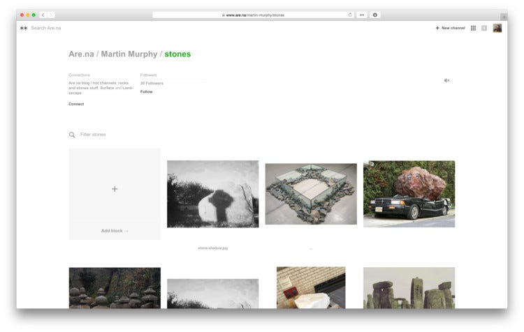 “Using Are.na for research”, is a nice read about using Are.na to set up spaces/folders. I love it because it allows me to be unorganised and organised with my thoughts at the same time.